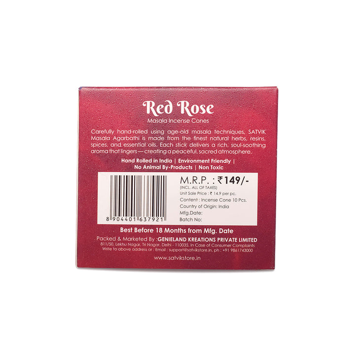 Buy Red Rose Pure Masala Incense Cones Online | Satvikworld.com