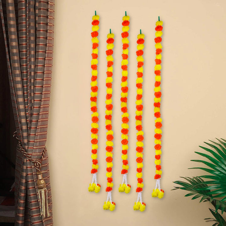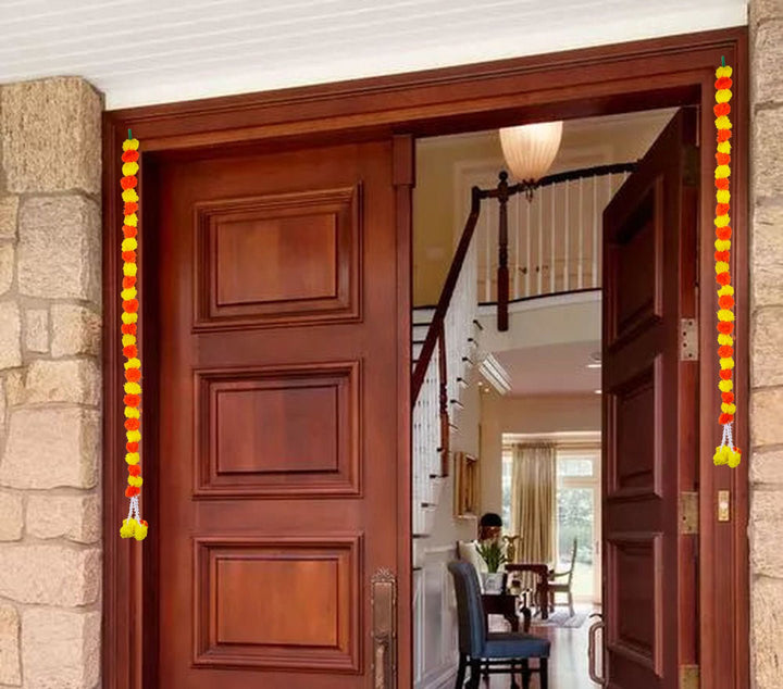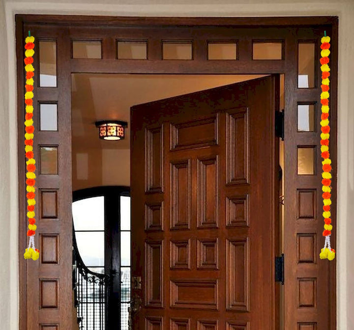 • Uses: Satvik Store Presents Beautiful Red And Yellow Backdrop (Latkan). 5 or 10 Pcs of Artificial Flower Strings Indian Flower backdrop Multi String Artificial Blossom Indian Wedding Birthday Christmas Decoration Style - Traditional Indian Decoration Marigold Strings Material Used - Fiber , plastic and cotton threads Quantity - 5 or 10 strings in 1 pc Size - 160cm (63 Inch) Long Artificial red and yellow flowers strings for decorations. For party backdrop, wall decor, door hangings, entrance decoration, wedding decoration, COCO themed party decorations, Day of the dead decor, Indian festival decor, Indian wedding decor, housewarming, baby shower, bridal shower, thanksgiving decor, fall season wedding decor, Halloween decor and other festival decorations, etc. They can be used to make beautiful flower backdrop or flower curtains. They can be tied at the end to make longer strings. Please strike them gently with hands to make them fluffy at the time of decoration. They are made up of plastic are washable and can be reused. Note: Due to the difference between different monitors, the picture may not reflect the actual color of the item.