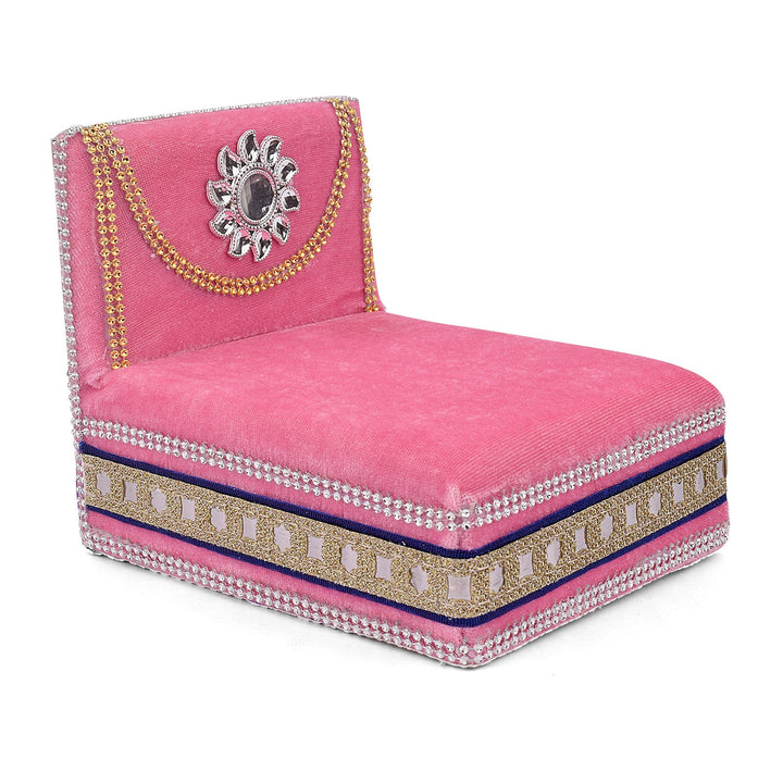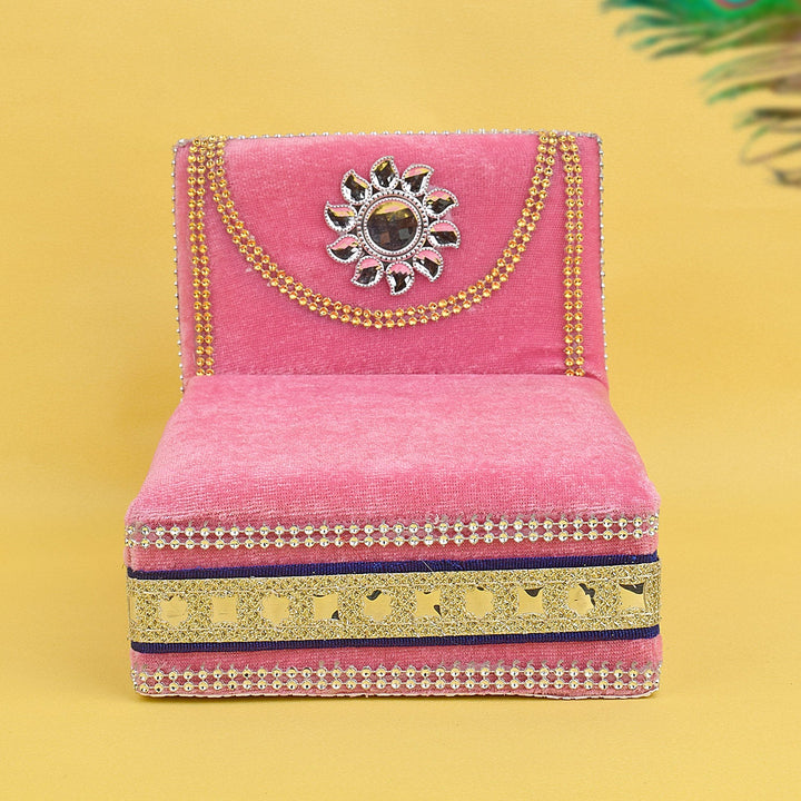 laddu gopal velvet sleeping bed | velvet deity bed small | kanha ji pink velvet bed | red gopal ji sleeping throne | pooja bed for krishna ji | small size divine bed | bal gopal accessories | temple pooja bed | laddu gopal sleeping seat | home mandir bed for kanha