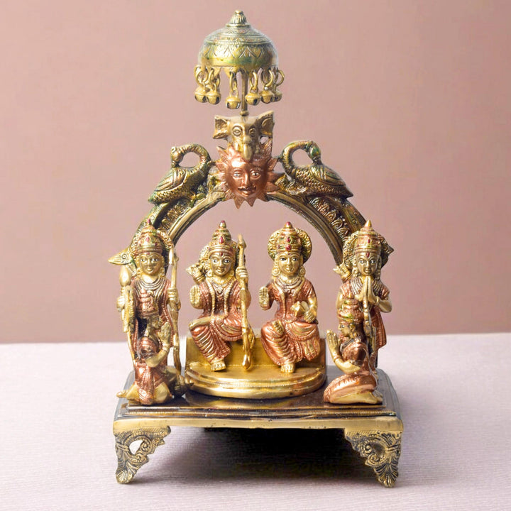 About Product: Bring divine presence into your home with this 13.5-inch Brass Ram Panchayat Idol, featuring Lord Ram, Sita, Lakshman, and Hanuman in intricate brass craftsmanship. This idol is a beautiful representation of the values of righteousness, devotion, and strength from the sacred Ramayana.