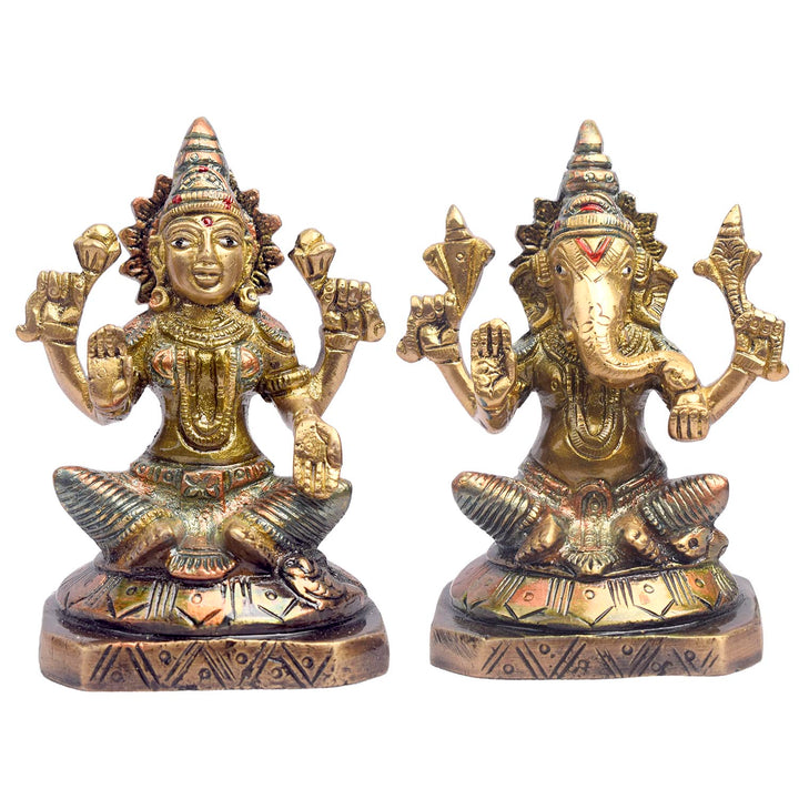 5.1 Inch Antique Finish Lakshmi Ganesh Idol in Brass