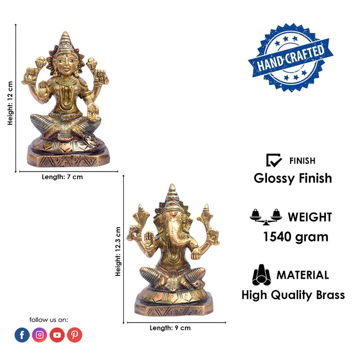 • Item Name: 5.1 Inch Elegant Brass Lakshmi Ganesh Idol