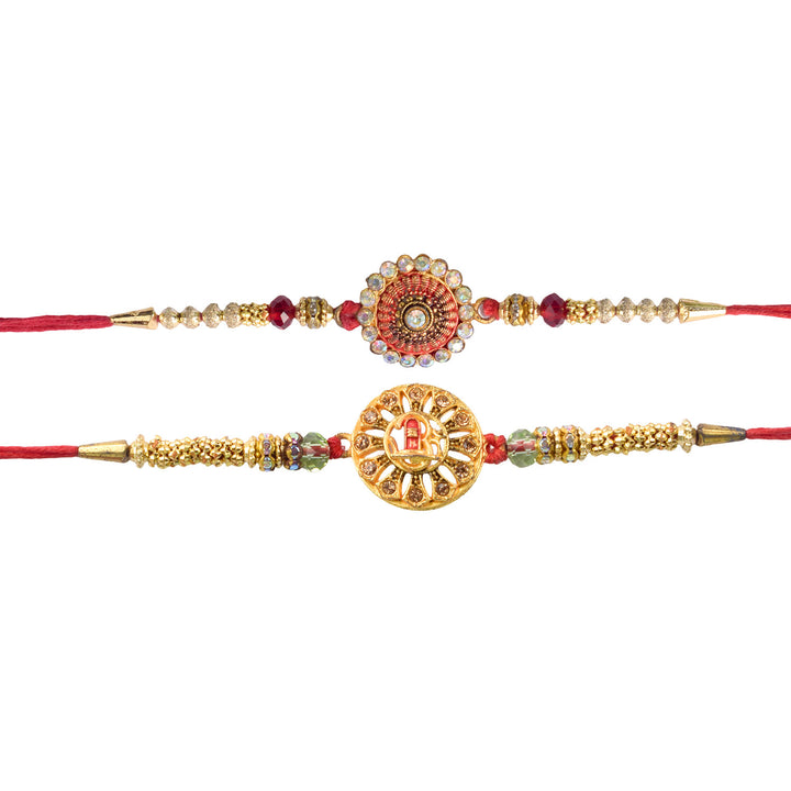 About Product: Strengthen the sacred bond of sibling love with this Set of Two Rakhis, beautifully designed for your beloved brothers. Each rakhi features traditional threadwork and intricate detailing, making them a perfect blend of spirituality and festivity.