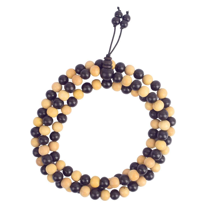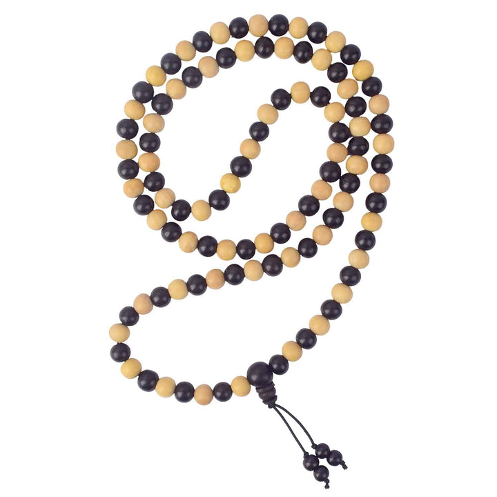 8mm ebony and white chandan mala | ebony sandalwood mala | spiritual japa mala | white chandan scented mala | meditation mala 108 beads | dual wood prayer mala | fragrant sandalwood mala | natural ebony mala | calming and grounding mala | white chandan and ebony beads mala