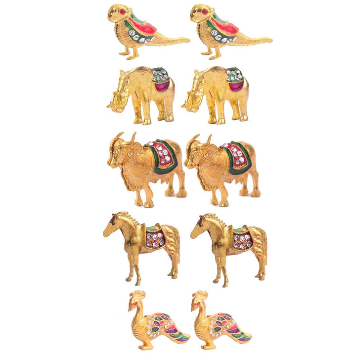 Enhance your Laddu Gopal's playtime with this set of 5 adorable animal toys. Each toy is meticulously handcrafted to add a touch of realism. Made from premium quality materials, they are durable and safe for your little one. Bring joy and entertainment to your child's devotional play with this set.