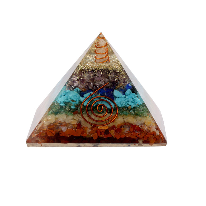 Each crystal layer resonates with a specific chakra, helping to restore harmony, reduce stress, and improve overall wellbeing. The pyramid shape amplifies energy, making it ideal for meditation, healing sessions, and spiritual decor in your home or office.