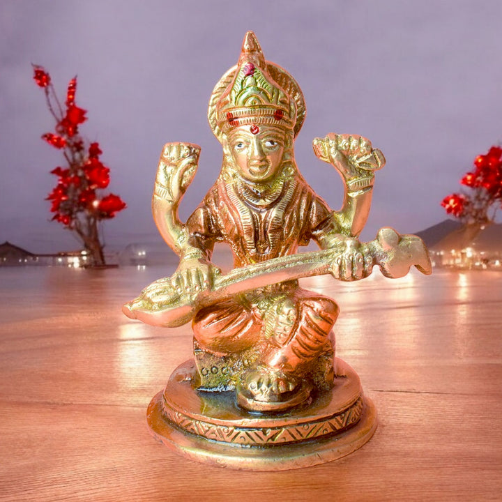 • Material: The Saraswati Mata Murti is made from High-Quality Brass Material