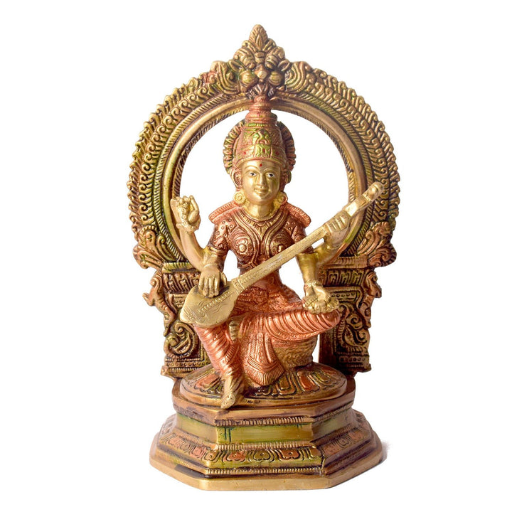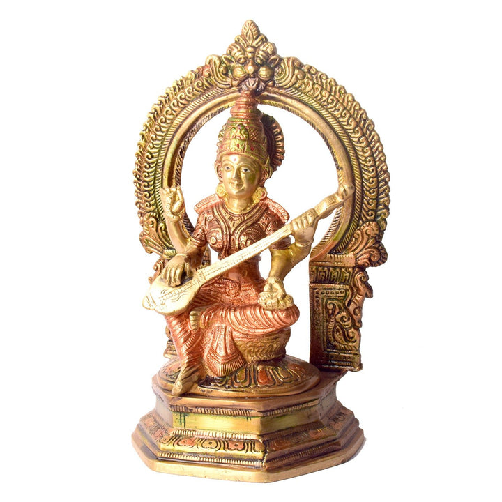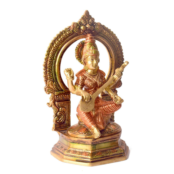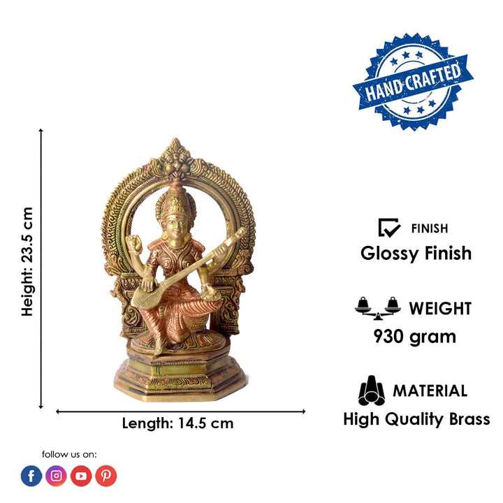 • Material: The Saraswati Mata Murti is made from High-Quality Brass Material