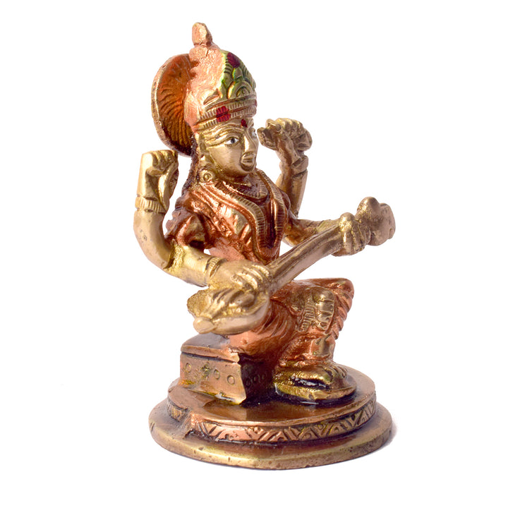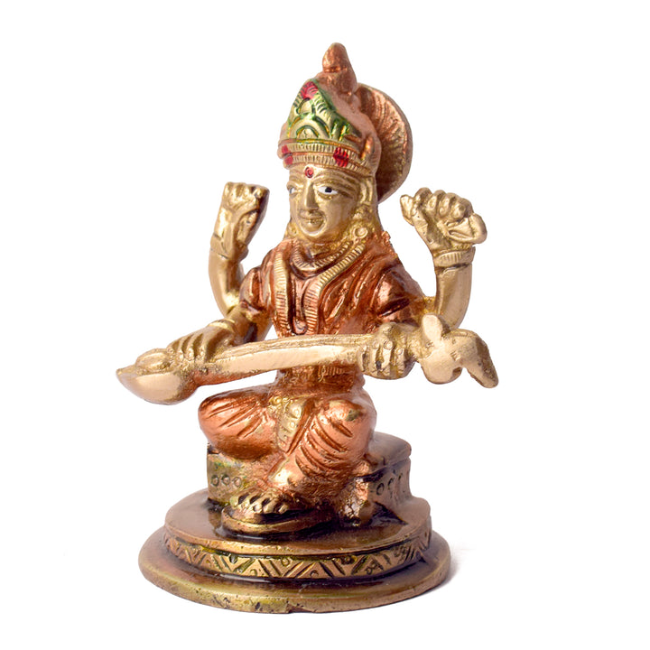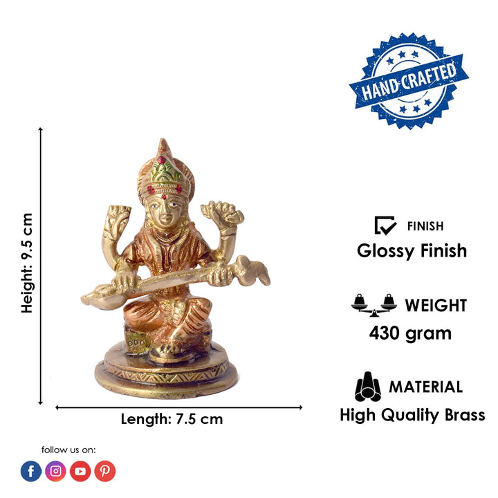 • Material: The Saraswati Mata Murti is made from High-Quality Brass Material