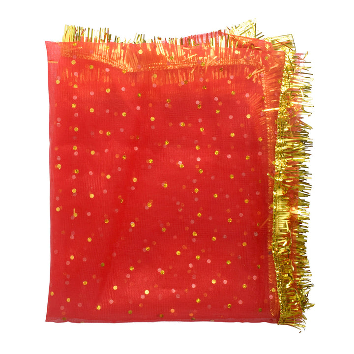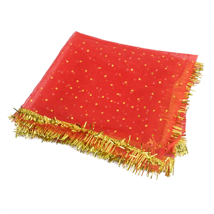 Small Dotted Mata Chunni | Red Puja Chunni | Traditional Mata Chunni | Devotional Textile | Puja Decoration Cloth | Indian Religious Accessories | Spiritual Puja Essentials | Mata Worship Cloth | Festive Puja Decoration | Sacred Puja Fabric