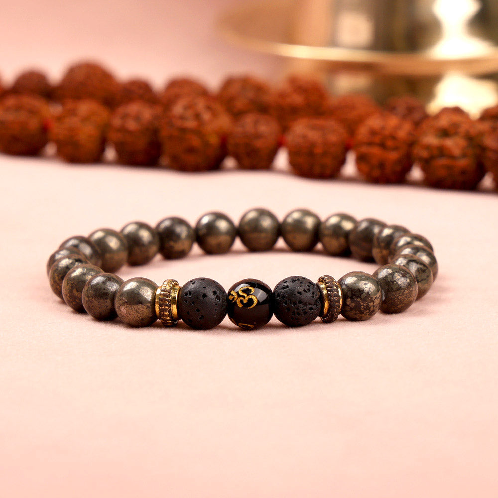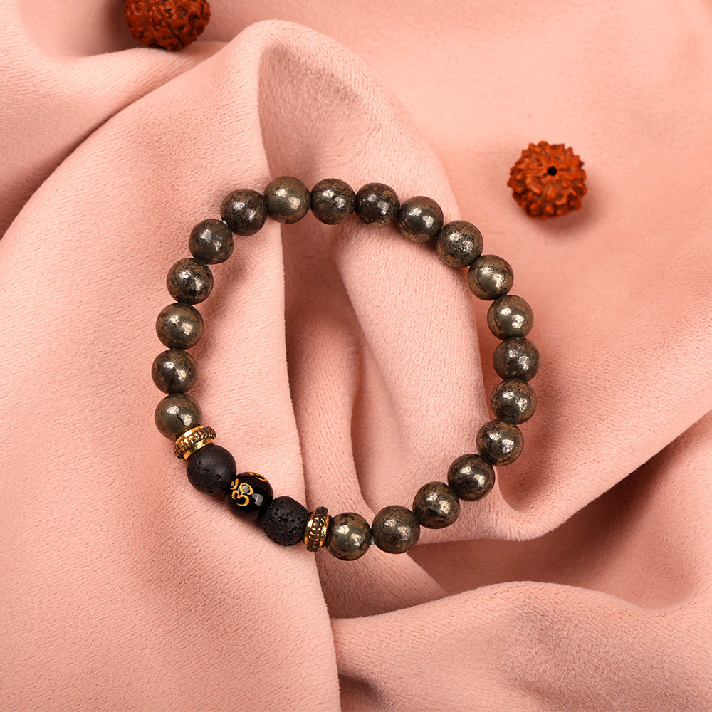 Buy Om Raw Pyrite Lava Healing Stone Bracelet | Satvikworld.com