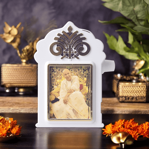 Guruji Photoframe: Preserve the divine moments with Guruji in our beautifully designed photoframes, encapsulating the serenity and blessings bestowed upon his followers.