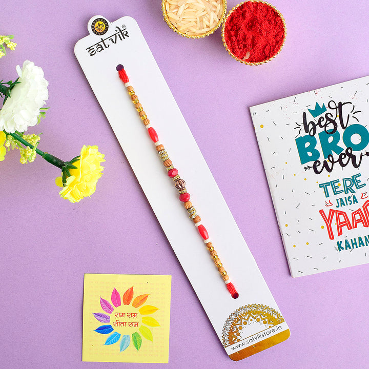 • About Product: Celebrate Raksha Bandhan with our handcrafted Rakhis! Our collection includes beaded Rakhis, elegant Kundan Rakhis, and opulent Zardosi Rakhis, all meticulously designed with love and care. These exquisite creations are a perfect way to express your affection and strengthen the bond with your siblings. Each Rakhi reflects the artistry of our skilled artisans, making them unique and special. Choose from a variety of vibrant colors, intricate patterns, and sparkling stones to find the perfect Rakhi that complements your sibling's style. Embrace the tradition of Raksha Bandhan with our handcrafted Rakhis and create cherished memories that last a lifetime. Shop now and make this Raksha Bandhan an extraordinary celebration of love and togetherness!