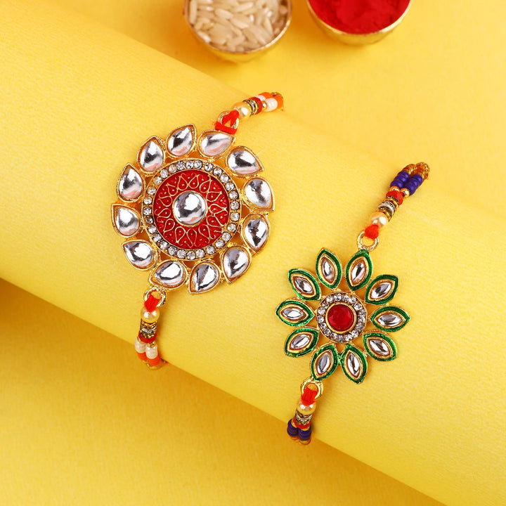 Graceful Kundan Rakhi for a Cherished Tie (Set of 2)