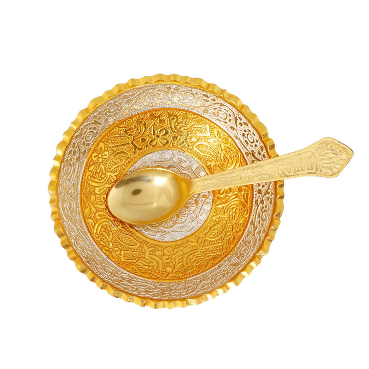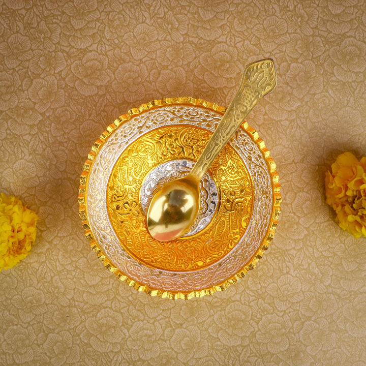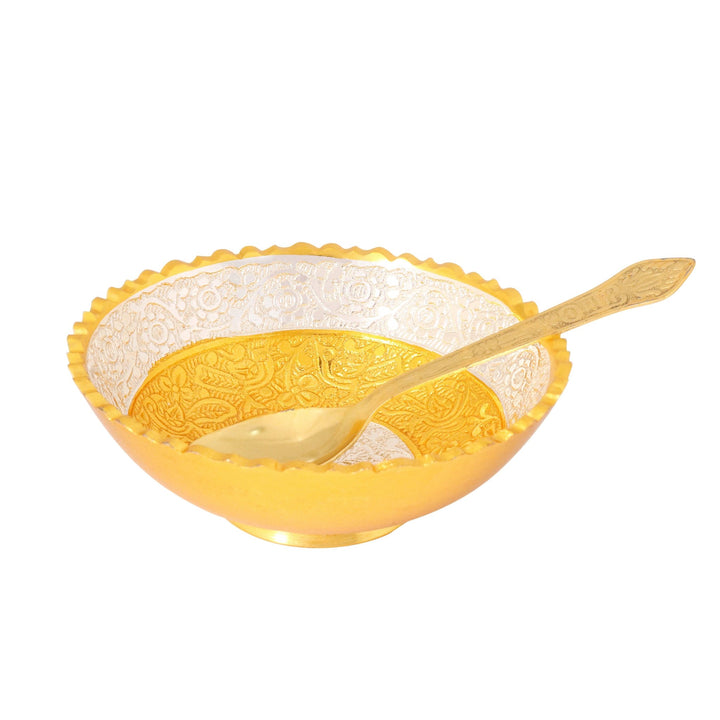 • Package Contains: 1 Pc Designer Embossed Bowl with 1 Spoon. This Set comes With Unique Royal Velvet Box Premium Gift Packing Set.