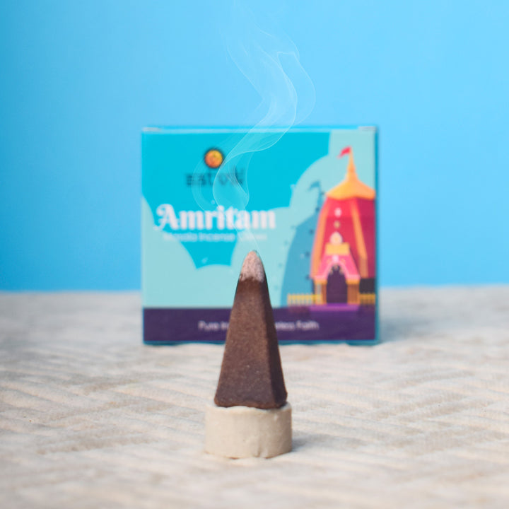 Amritam incense cones | Pure masala incense cones | Handcrafted dhoop cones | Natural masala incense cones | Spiritual incense cones | Amritam cones for pooja | Meditation incense cones | Herbal incense cones | Devotional dhoop cones | Premium masala incense cones
