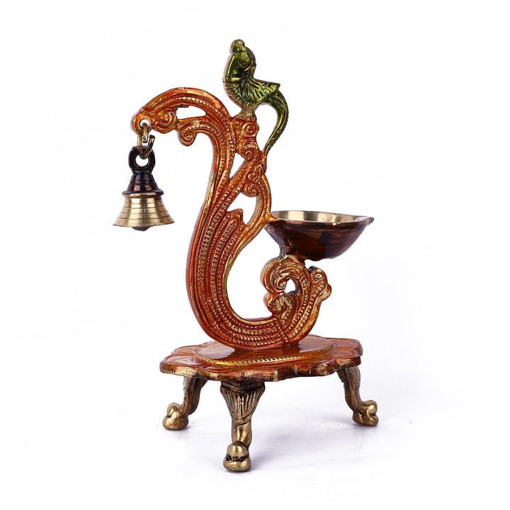 • Item Name: Beautiful Designer Brass Diya With Hanging Bell