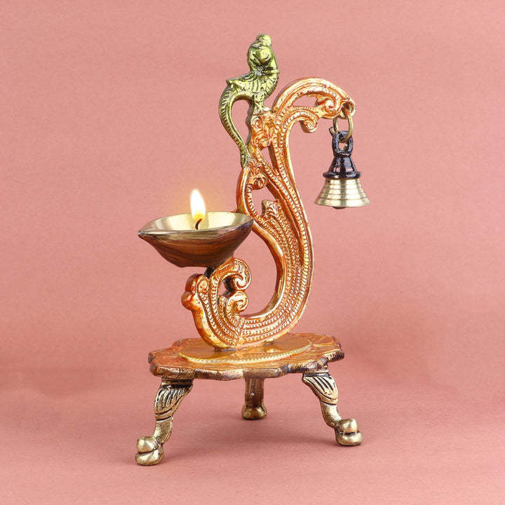 Buy Beautiful Designer Brass Diya With Hanging Bell | Satvikworld.com