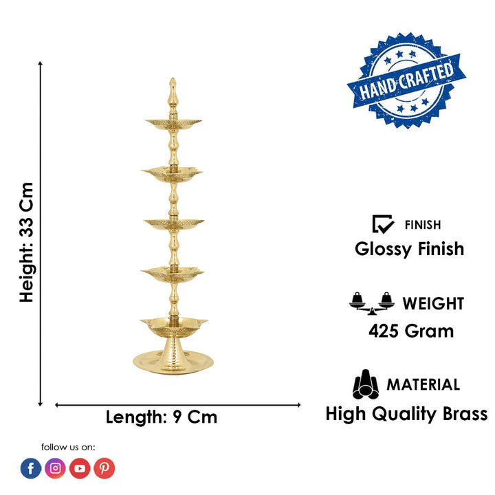Brass 5 Step Kerala Inauguration Diya | 5 Step Brass Diya | Traditional Kerala Deepam | Kerala Inauguration Lamp | Brass Temple Lamp | Multi-Tier Brass Diya | Spiritual Brass Lamp | Brass Samai Deepam | Brass Oil Lamp | Brass Pooja Lamp | Indian Ritual Lamp | Handcrafted Brass Diya