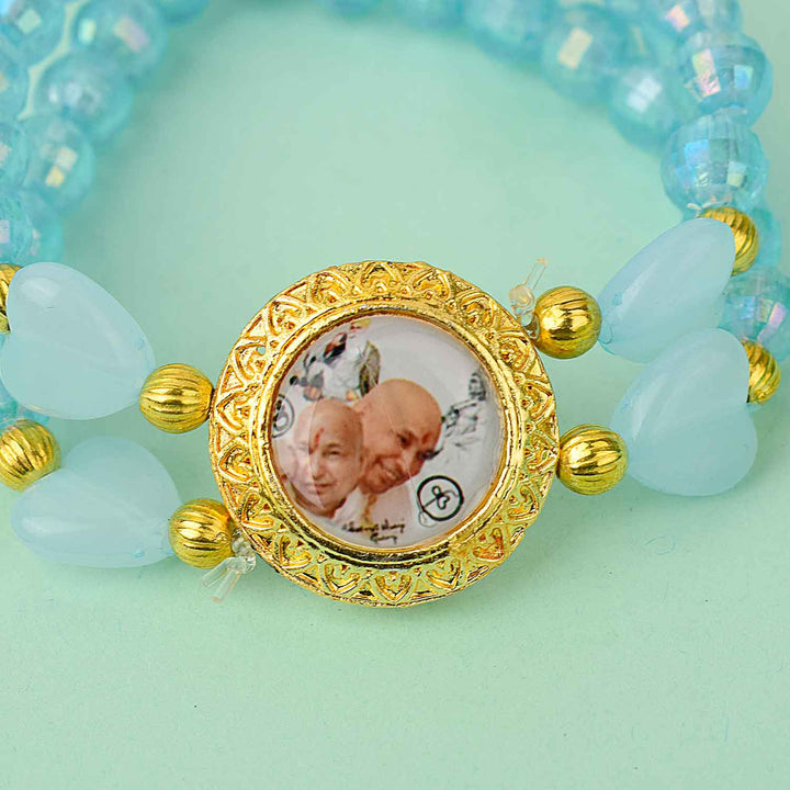 The Charming Guruji Swaroop Bracelet (Assorted) – featuring a delightful mix of round and heart-shaped beads, this bracelet reflects both love and devotion. With vibrant colors and a soft, spiritual vibe, it's ideal for gifting, spiritual wear, or everyday styling. A perfect tribute to Guruji’s presence in your life.