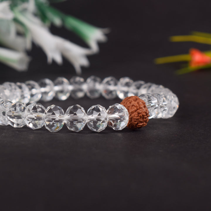 Buy 10 Mukhi Rudraksha Bracelet with Sphatik Beads | Satvikworld.com