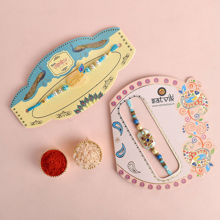 Set of 2 Rakhi | Rakhi for Brothers | Traditional Rakhi Combo | Rakhi Set with Roli Chawal | Buy Rakhi Online | Designer Rakhi for Brother | Rakhi with Stickers | Raksha Bandhan Rakhi Set | Premium Rakhi Threads | Rakhi for Siblings