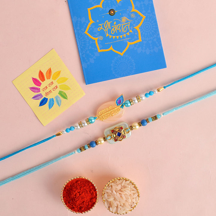 • Item Name: Traditional Rakhi Set of 2 with Roli Chawal & Ram Sita Stickers