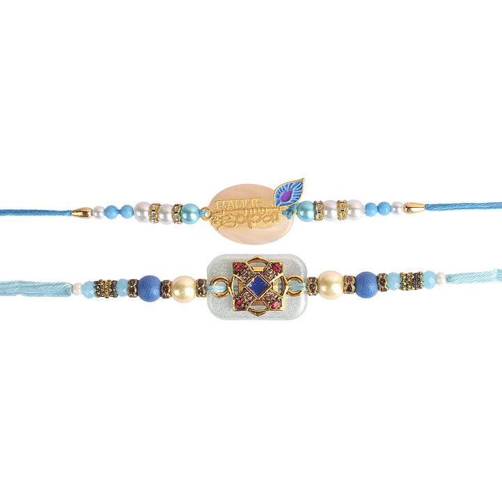 About Product: Strengthen the sacred bond of sibling love with this Set of Two Rakhis, beautifully designed for your beloved brothers. Each rakhi features traditional threadwork and intricate detailing, making them a perfect blend of spirituality and festivity.