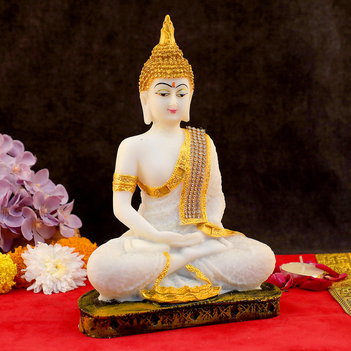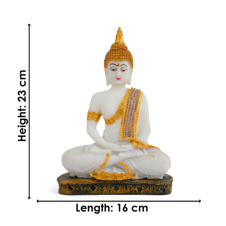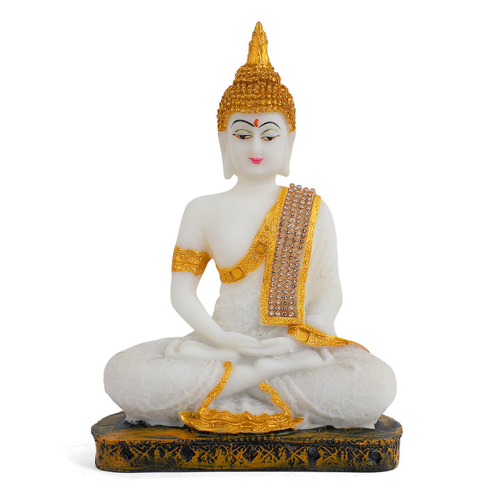 About Product: TThe Resin Buddha in Samadhi Pose is a sublime representation of spiritual serenity and inner tranquility. Crafted with meticulous detail, this resin sculpture captures the essence of Buddha in a state of deep meditation, radiating a sense of profound peace and enlightenment.In the Samadhi pose, the Buddha is depicted in a seated, cross-legged position, with hands resting in a meditative mudra. The intricate details of the sculpture, from the gentle folds of the robes to the closed eyes and serene expression, convey a sense of stillness and detachment from the external world.