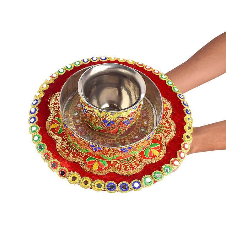 Luxurious Multicolor Karwa Chauth Thali Set-3pc