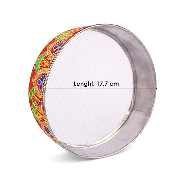 About Product: Karwa chauth beautiful Steel thali set includes a thali, Lota, Sieve for traditional and trendy way of karwa chauth pujan for all the married / engaged ladies and girls. Be attractive by using such a decorative piece of thali of puja for your love/ life. This thali can also be used on Diwali/ Deepawali Pujan. Karwa chauth thali set, karwa chauth thali, karwachauth thali platter, karvachauth thali platter, pooja thali set, steel puja thali set, complete karwachauth set, karwachouth set, designer thali set,hanmade thali set, Indian traditional set, karwachauth thali.