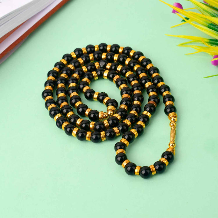 • Item Name: Jai Guruji Swaroop Mala – Black & Golden Beads