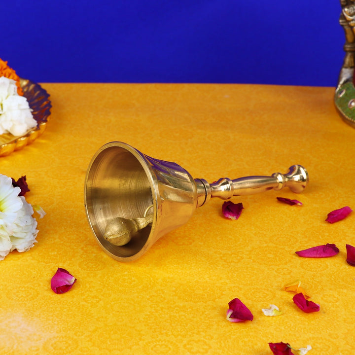 Pooja Ghanti: Prepossessing Brass Hand Held Puja Bell |Satvikworld.com