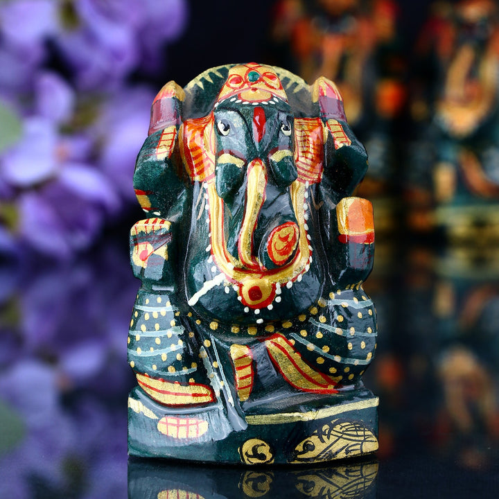 • Item Name: Natural Hand Printed Green Jade Stone Margaj Ganesh Statue