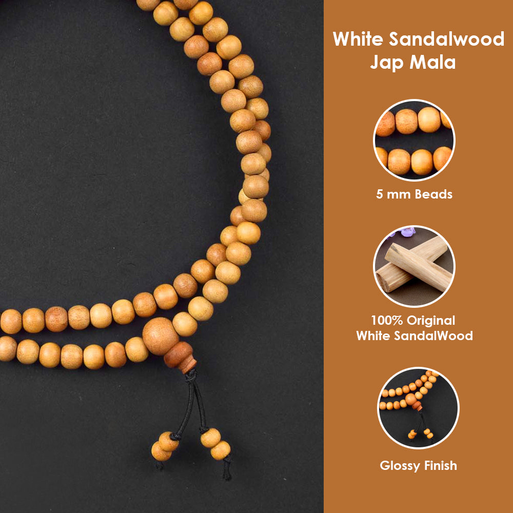 • Product Details: Material: Original White Sandalwood (Chandan) Jap Mala, Finish Type: Glossy