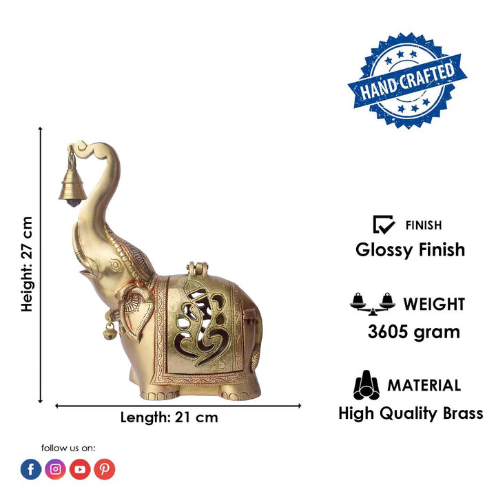 • Product Name: 10.6 Inch Brass Elephant Tealight Holder with Bell - Home & Pooja Décor