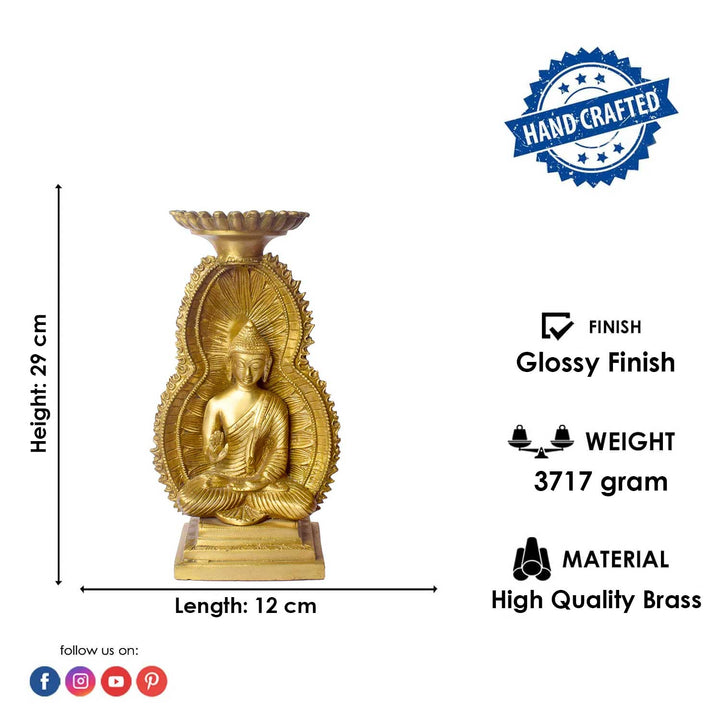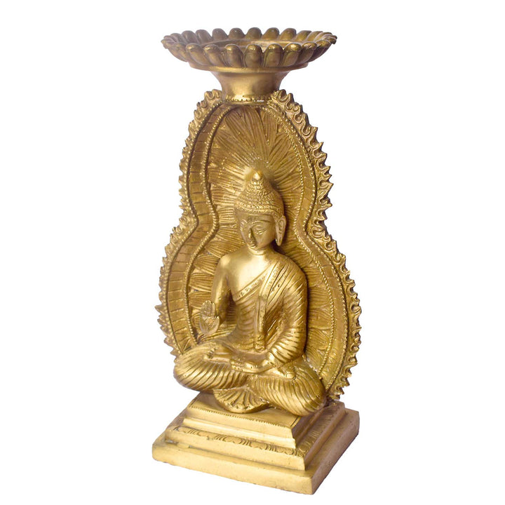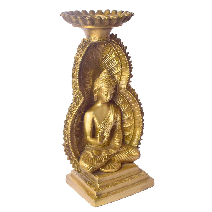 Buy 11.4 Inch Sculpted Brass Buddha Candle Stand | God Statue For Prayer | God Statue Online | Satvik – Satvikworld.com