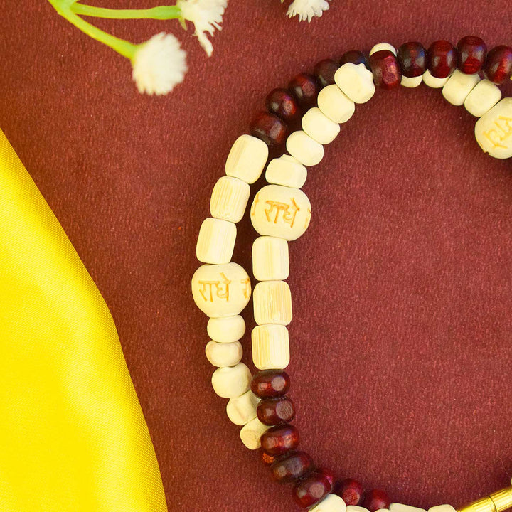 ✨ Benefits of Wooden Mala with Radha Krishna Locket: