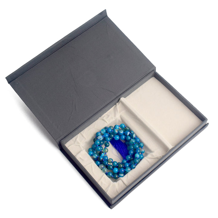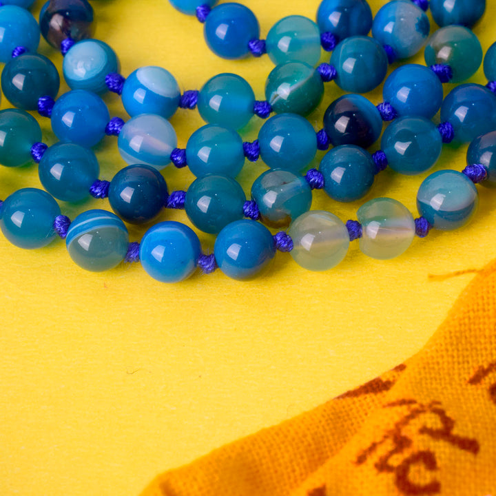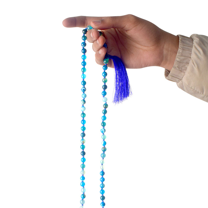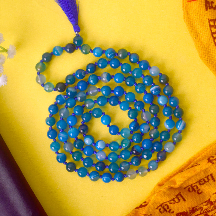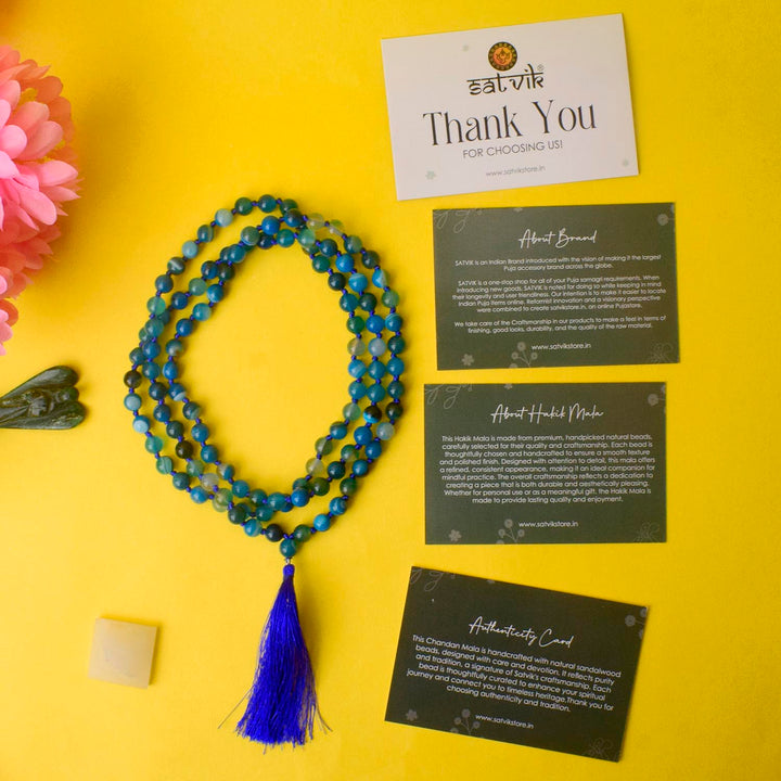Premium Hakik Jap Mala | Blue Hakik Jap Mala | Crystal Mala for Communication & Peace | Meditation Beads for Chanting | Throat Chakra Healing Mala | Blue Agate Mala for Stress Relief |