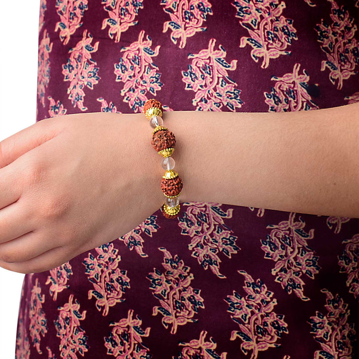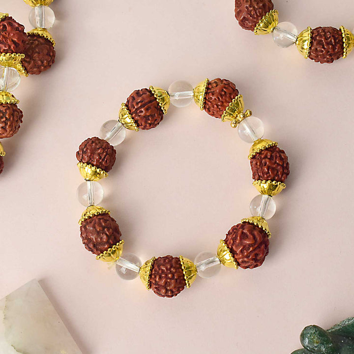 About Product: This Rudraksha Bracelet is crafted from sacred Elaeocarpus ganitrus seeds, revered in Vedic tradition for their spiritual and healing energies. Known for enhancing mental clarity, emotional balance, and protection from negative energies, this bracelet supports a calm and centered life.