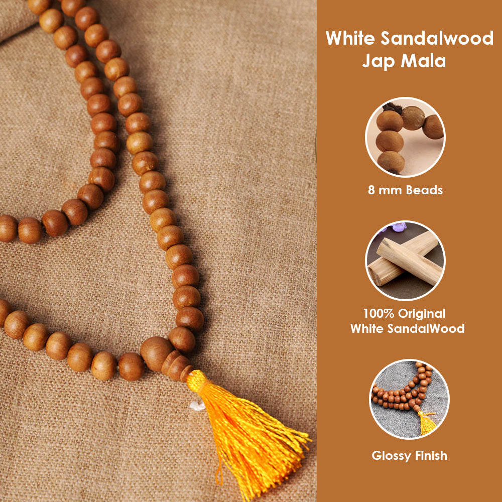 Buy 100% Original White Sandalwood (Chandan) Jap Mala | Satvikworld.com