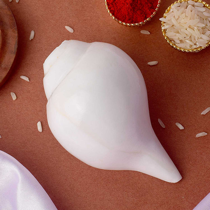 Buy | 10 cm Natural Vamavarti Shankh for Daily Pooja | Satvikworld.com