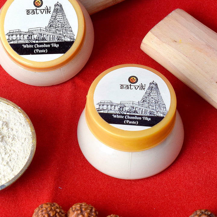 White Chandan tika or safed chandan is a very sacred part of Indian Rituals. it used in Pooja, Yajnas, Fire sacrifice as well. White Chandan tilak is auspicious. It stands for prosperity as well. it a must-have ingredient for many auspicious occasions.