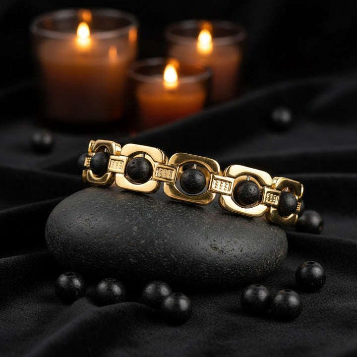 About Product: This Gold Plated Karungali Bracelet combines spiritual tradition with elegant design. Crafted with natural karungali beads and premium gold IGP (Ion Gold Plating), the bracelet ensures long-lasting shine, durability, and resistance to tarnishing. Designed for daily wear, meditation, or gifting, it acts as a stylish accessory while symbolizing spiritual energy, protection, and positivity.