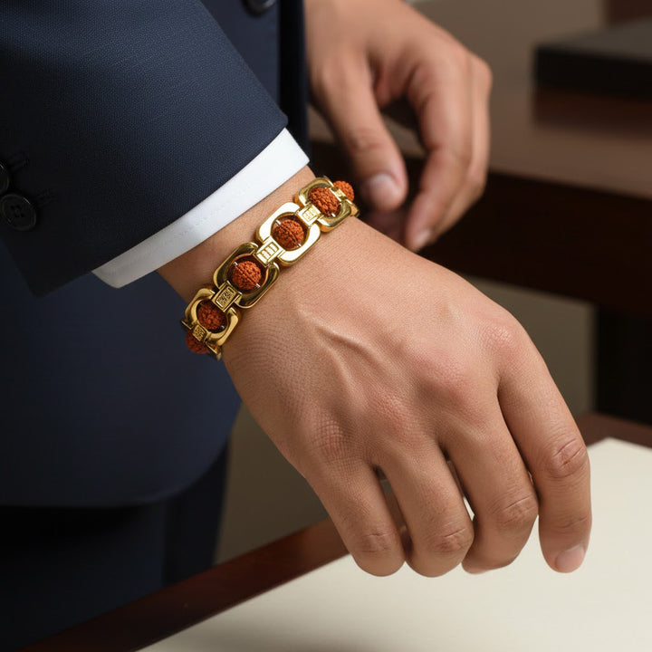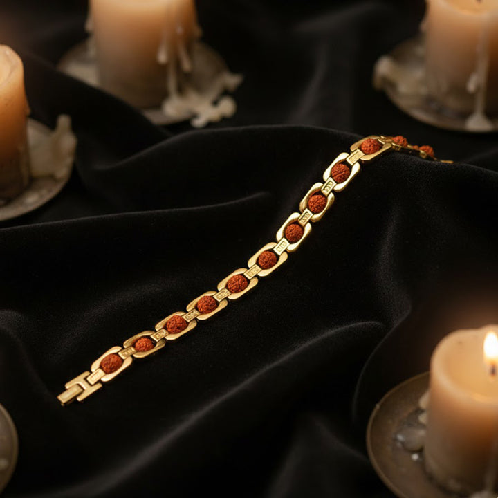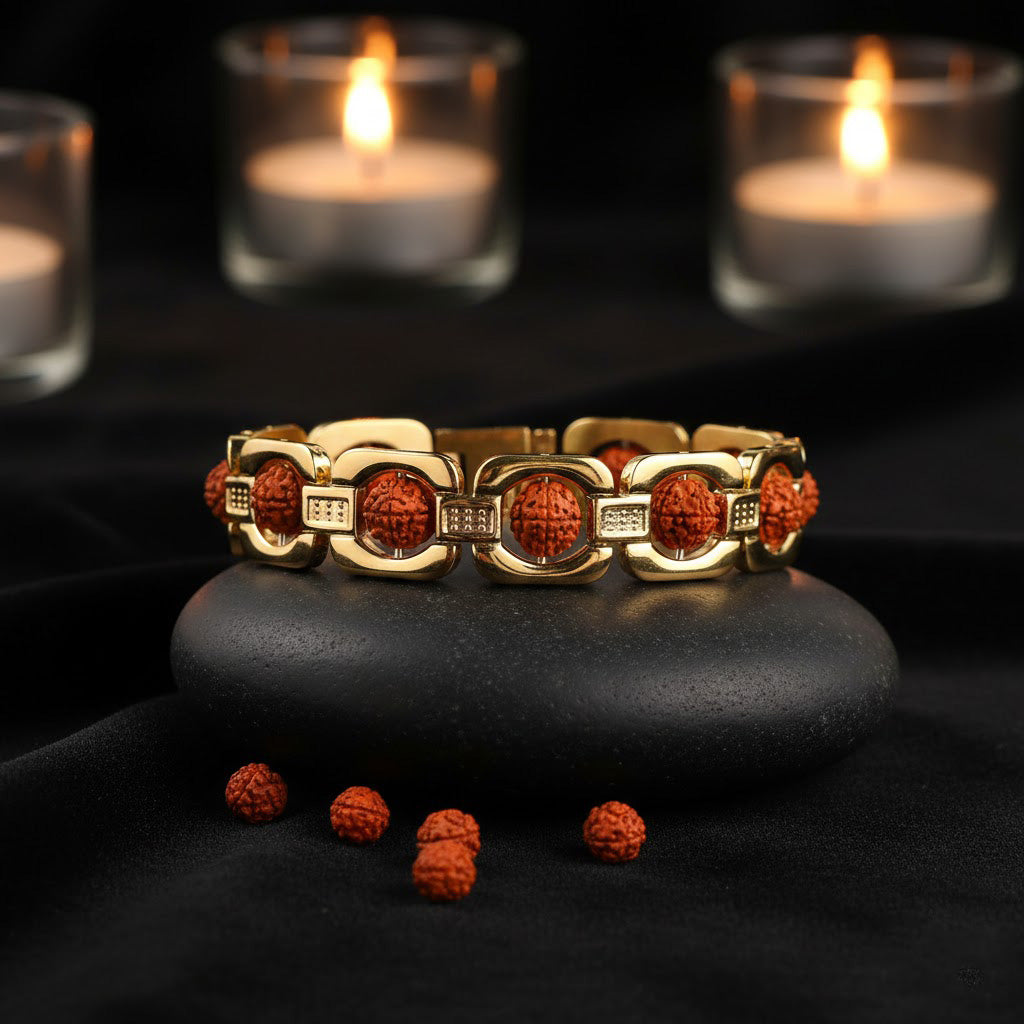 Gold Plated Rudraksha Bead Bracelet Premium Spiritual Wear