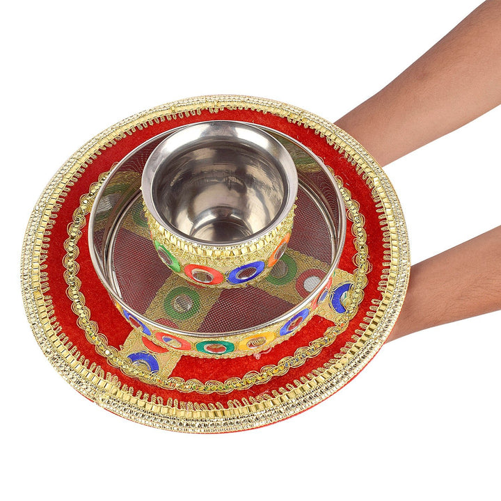 Red Karwa Chauth Thali Set with Unique Design|Shop at Satvikworld.com